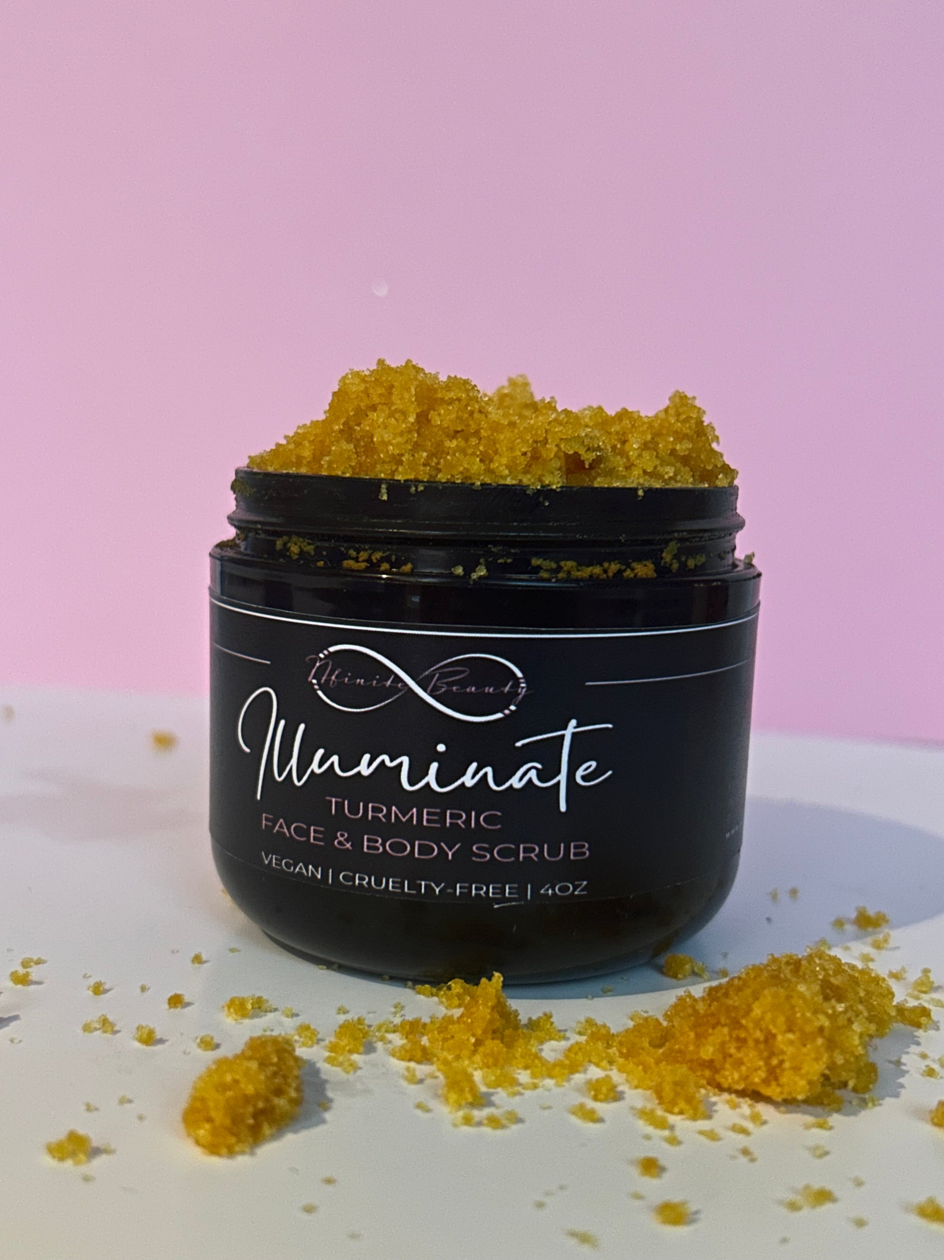 Our Illuminate Turmeric Scrub is here to brighten up your day -- and face! Powered with turmeric, a drop of honey, and a touch of citrus makes this scrub amazing for fading dark spots, hyperpigmentation, and scars.